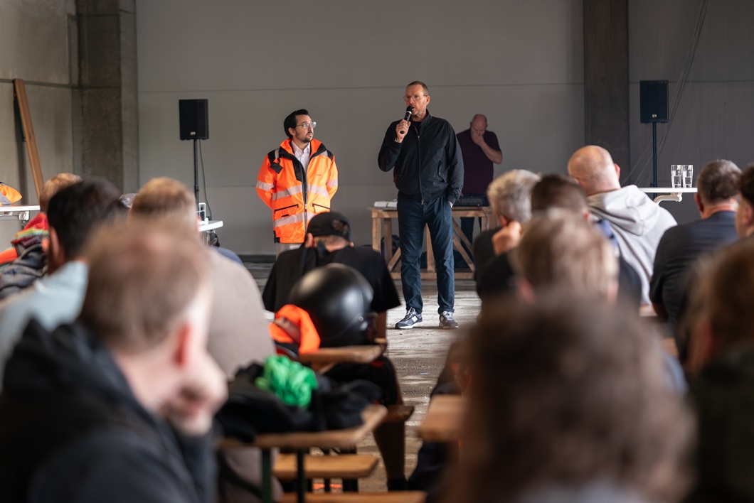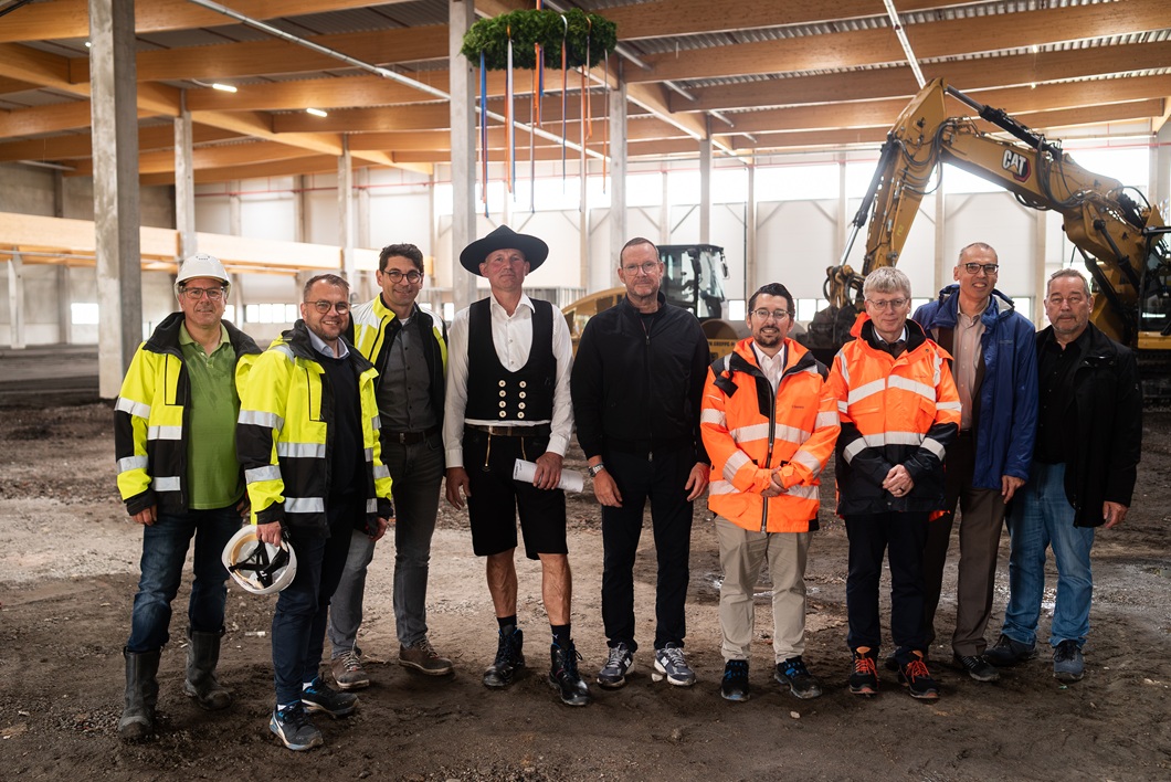 Am vergangenen Donnerstag hatte der Wettergott ein Einsehen und ließ das Richtfest auf der Still-Baustelle in der Borsigstraße bei trockenem Wetter erfolgreich gelingen. Ein traditionelles Richtfest wie man es sich vorstellt – mit Richtkranz, Richtspruch und einem rustikalen Buffett.
