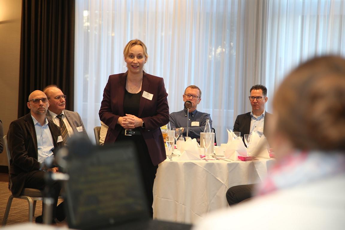 Heike Tipmonta, HIW Hamburg Invest Wirtschaftsförderungsgesellschaft, während der Vorstellrunde. -