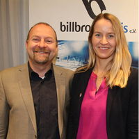 Gespräch unter Billbrookkreis-Mitgliedern: Tanja Königshagen, Geschäftsführerin Agentur FMR im Norden, und Dr. Matthias Otto, Mitglied der Geschäftsleitung Chemische Fabrik Dr. Weigert. -