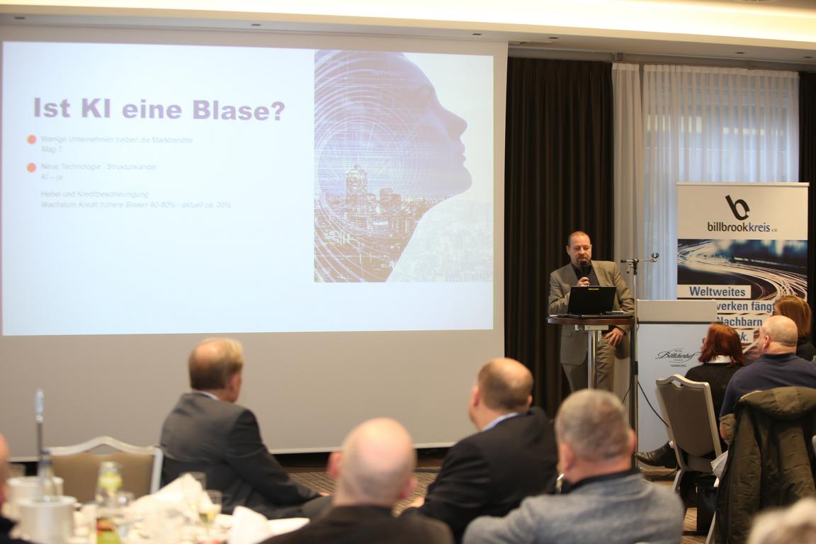 Allerdings seien weder die Kreditfinanzierung noch die Bewertungen historisch extrem. Auch Börsengänge verlaufen moderater als in früheren Blasenphasen. Rücksetzer im KI-Sektor wertet der Referent daher eher als gesunde Konsolidierung denn als Crash-Vorbote. Die strukturelle Bedeutung von Künstlicher Intelligenz für Produktivität und Wachstum bleibe ungebrochen.
