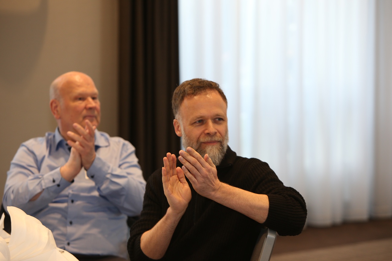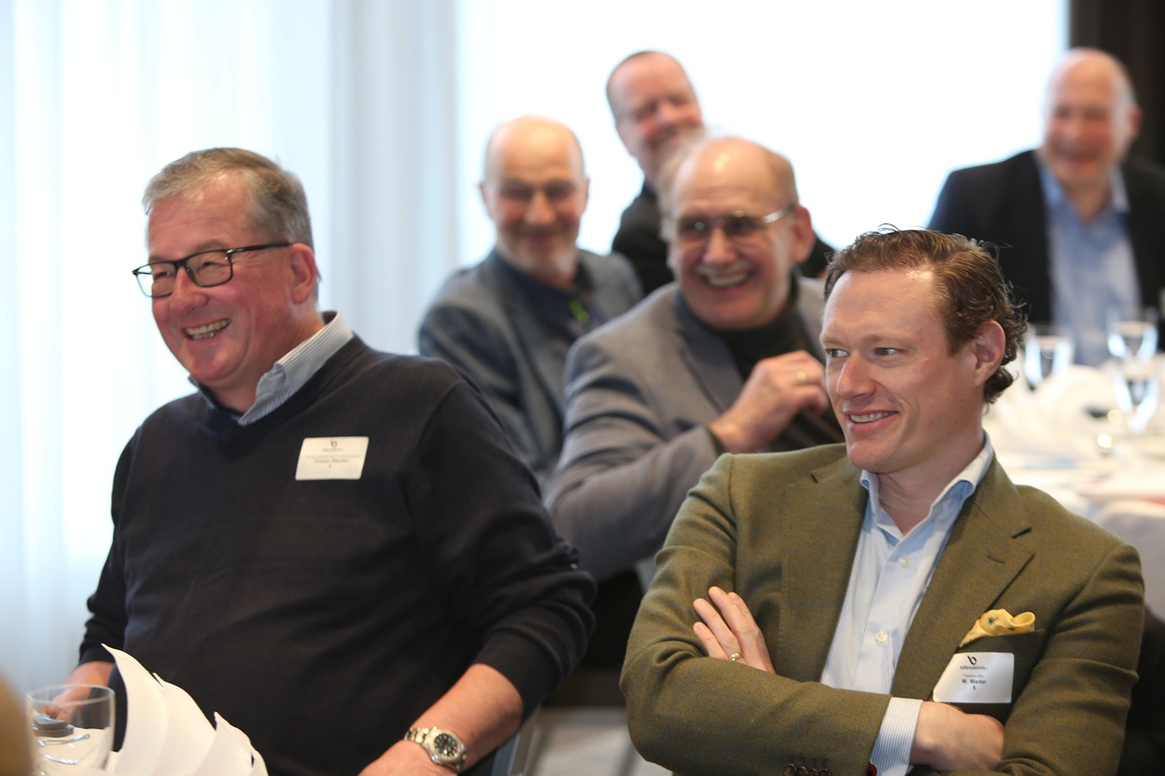 Carsten Mandrys (vorn), Geschäftsführer von Benthack, und Matthias Grönwoldt, Geschäftsführer von Kiria, verfolgten die Vorstellungsrunde des Billbrookkreis-Treffens. -