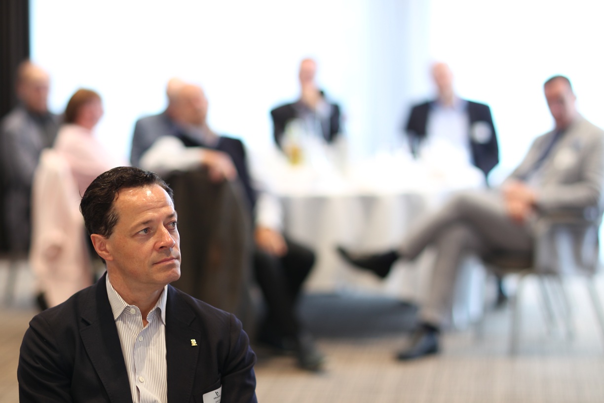 Dennis Bothmann von Securitas kam mit seinen Tischnachbarn über das Thema Sicherheit in Hamburg ins Gespräch. -
