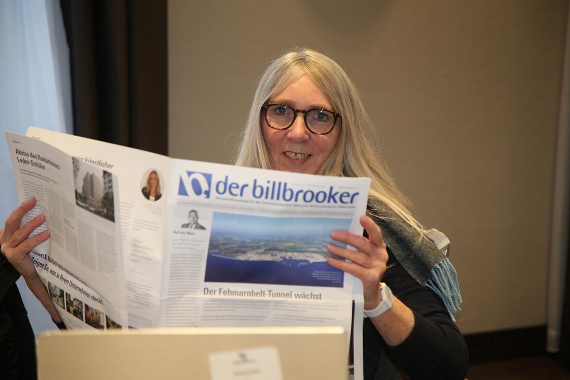 Karen Grell, Redaktion „der billbrooker“, freute sich über die frisch gedruckte, gelungene Ausgabe der Wirtschaftszeitung. -