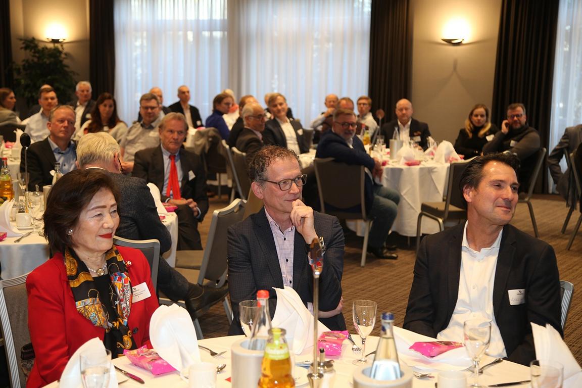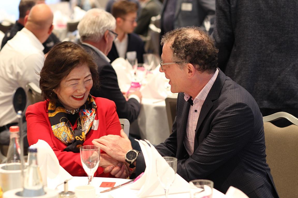 Eiko Hashimaru-Shigemitsu, Präsidentin der Deutsch-Japanischen Gesellschaft zu Hamburg, zählt zu den Ehrengästen Billbrookkreises. Hier im Gespräch mit Stefan Kühnbach, CCO der Indaver-Gruppe. -