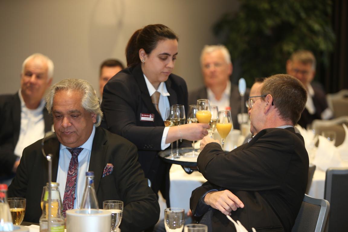 „125-mal eine solche Veranstaltung zu machen, das ist schon etwas Besonderes und das wollen wir auch ein bisschen feiern“, freute sich Bernhard Jurasch, Erster Vorsitzende des Billbrookkreises, und stieß mit den mehr als 80 Gästen aus dem Umfeld des Billbrookkreises und des Bundesverbands mittelständische Wirtschaft auf das Jubiläum an. Der Billbrookkreis-Vorstand habe über die Jahre immer wieder hervorragende Referenten einladen können. „Es waren viele tolle Leute hier, die auch gern gekommen sind“, so Jurasch. Es mache große Freude, dass auch regelmäßig so viele Gäste zu den Veranstaltungen kommen.
